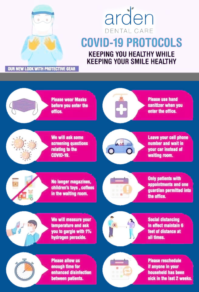 - Personalized arrival procedures to guide you from your car directly to treatment rooms to eliminate contacting surfaces.